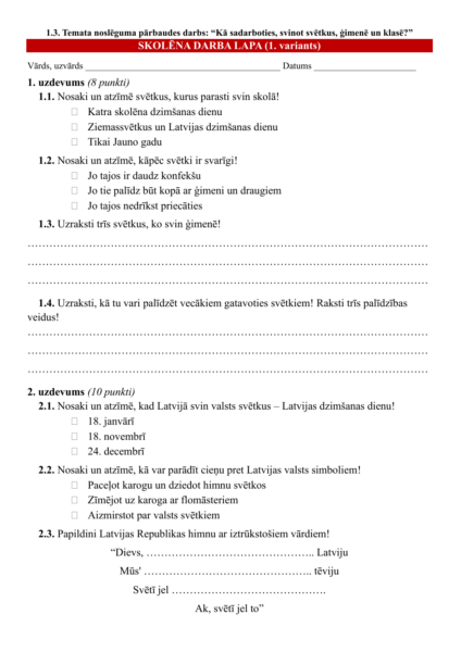 pārbaudes darbs: “Kā sadarboties, svinot svētkus, ģimenē un klasē?”