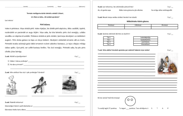 1) teksts par pirtnieka profesiju, uzdevumā jautājumi par teksu;