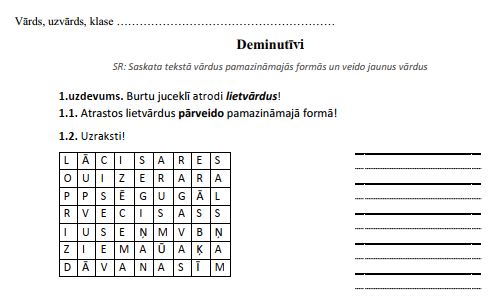 Saskata tekstā vārdus pamazināmajās formās un veido jaunus vārdus