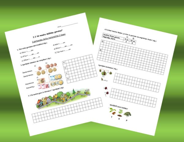 Materiāls izstrādāts pēc Lielvārds izdevniecības I.Helmanes, A.Dāvīdas matemātikas mācību grāmatas 2.klasei un pēc skola2030 mācību priekšmeta programmas parauga otrā temata: 2.2. “Kā nosaka dažādus garumus?” Materiāls pieejams Word formātā. Materiālā norādīts sasniedzamais rezultāts katram uzdevumam un pašvērtējums skolēnam.