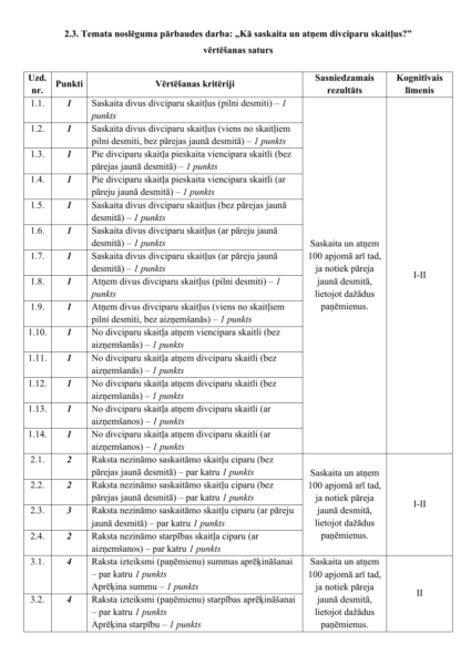 2.3. Temata noslēguma pārbaudes darbs: „Kā