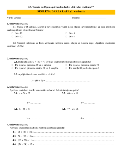 Katrs darba variants veidots drukāšanai A4 formātā no abām lapas pusēm, 2 lapas – vērtēšanas saturs)