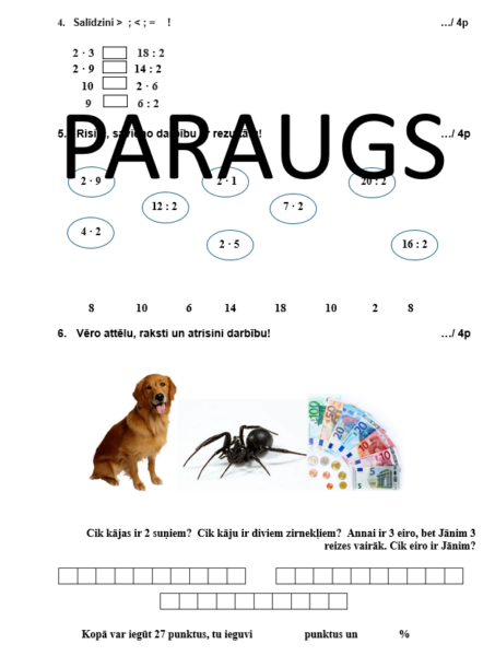 - reizināšanas un dalīšanas piemērus ar 2;
