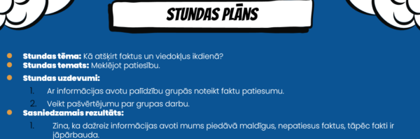 Stunda “Patiesības detektīvs” paredzēta 3. klases skolēniem tēmas “Kā atšķirt faktus un viedokļus ikdienā?” ietvaros.