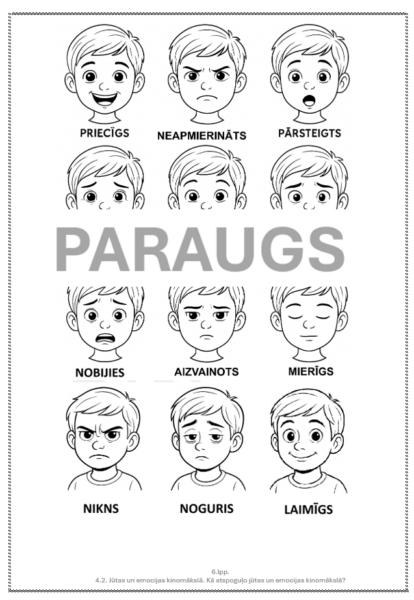 zīmēs emocijas un to pārejas;