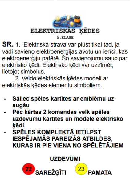 Uzdevumu kartītēs ir gan jāstrādā pēc attēla, gan jālasa un jāveido virknes un paralēlie slēgumi pēc teksta.
