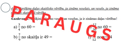 - teksta uzdevumi (daļas no veselā aprēķināšana un vesela, ja zināma daļas vērtības; varbūtība daļas veidā);