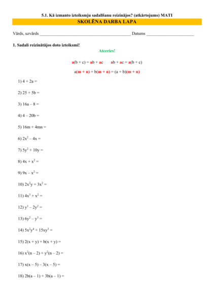 izteiksmju sadalīšanu reizinājos? (atkārtojums) MATI