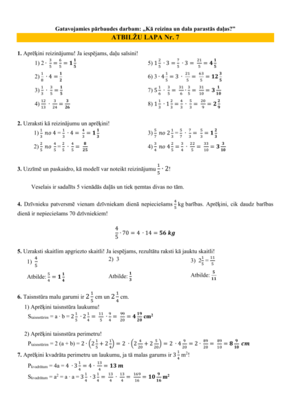 6.2.7. Gatavojamies pārbaudes darbam:Kā reizina, dala daļas
