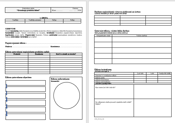 Komplektā tiek piedāvāts izdales materiāls ar uzdevumu biezputru izpētei un darba lapa grupu darbam praktiskā darba plānošanai.