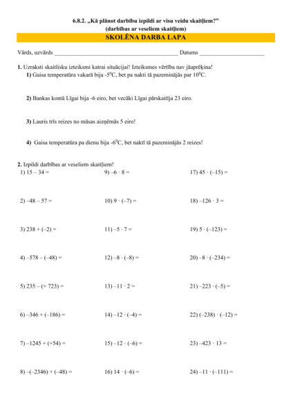 6.8.2. Kā plānot darbību izpildi ar visu veidu skaitļiem?6.8.2. Kā plānot darbību izpildi ar visu veidu skaitļiem?