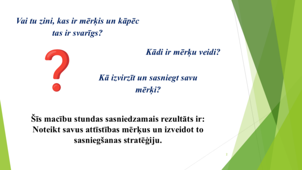 7.1.3. Kā izvirzīt un sasniegt personiskos mērķus?7.1.3. Kā izvirzīt un sasniegt personiskos mērķus?