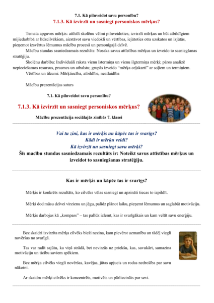 7.1.3. Kā izvirzīt un sasniegt personiskos mērķus?