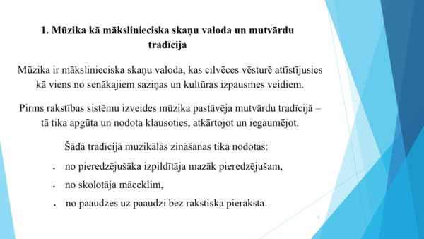 1. Mūzika kā mākslinieciska skaņu valoda un mutvārdu tradīcija