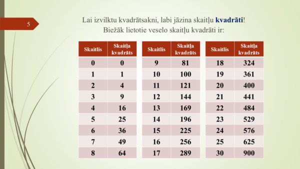 Uzraksti atsauksmi pirmais par “8.3.3. Aritmētiskās kvadrātsaknes precīza v. (prez.+DL)”