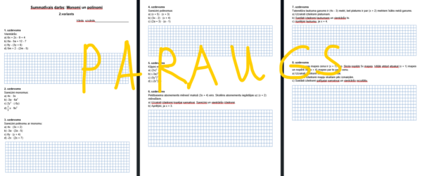 8.klase – Summatīvais darbs: Monomi un polinomi