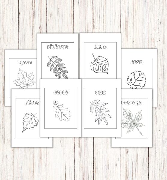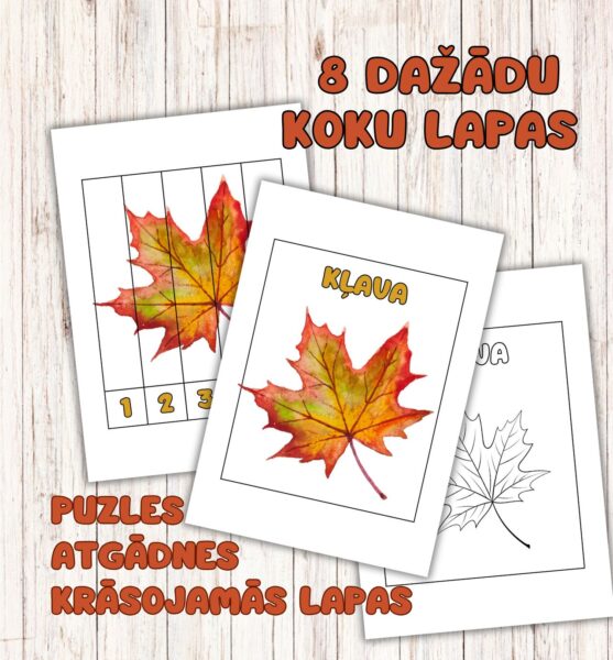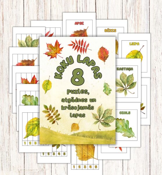 8 rudens koku lapu puzles +atgādnes +krāsojamās lapas