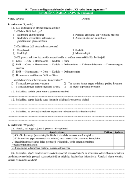 9.2 Temata noslēguma pārbaudes darbs: „Kā rodas jauns