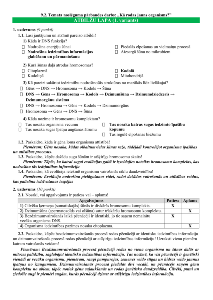 9.2. TND: “Kā rodas jauns organisms?” + atb.