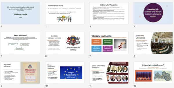Prezentācijā pastāstīts, kas ir vēlēšanas, kādi ir vēlēšanu veidi un kā vēlēšanas notiek.