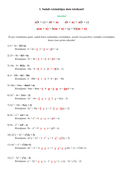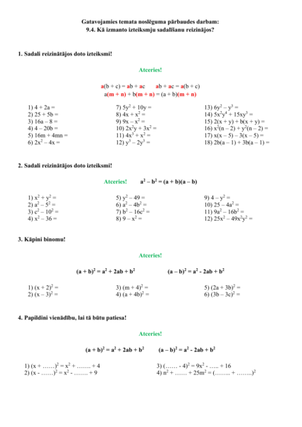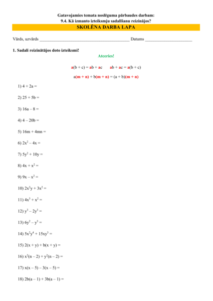 9.4.Kā izmanto izteiksmju sadalīšanu reizinājos? gatavošanās