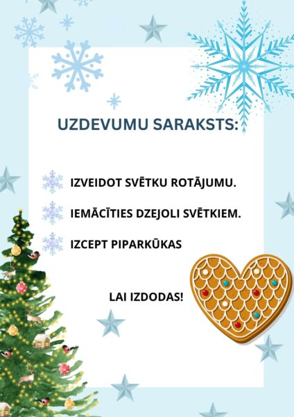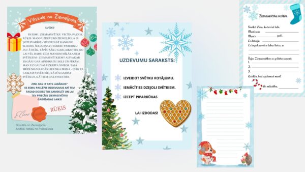 Rūķa vēstule, uzdevumu saraksts, lapa ar sagatavi “uzdevumu saraksts”  sagataves vēstulei Ziemassvētku vecītim – viena ar gatavu tekstu, kur jāaizpilda trūkstošās vietas, otra brīvas formas vēstulei.