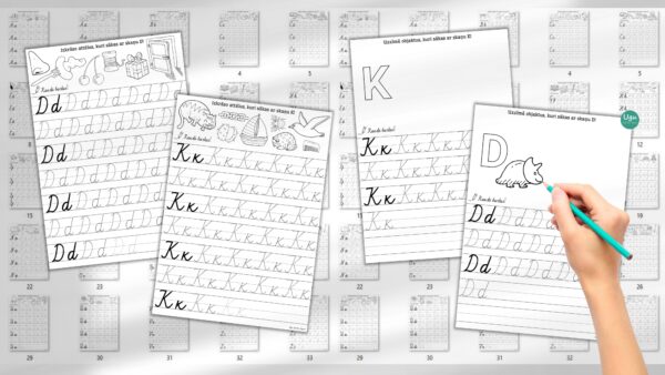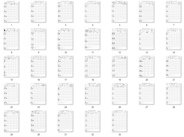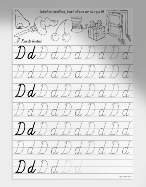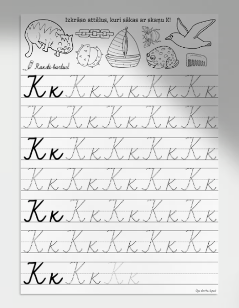 Šis komplekts ir lielisks palīgs, lai bērni vienlaikus mācītos rakstīt burtus un attīstītu fonemātisko dzirdi, sasaistot burtus ar skaņām un attēliem. PDF fails. Katrā komplektā 33 lapas.