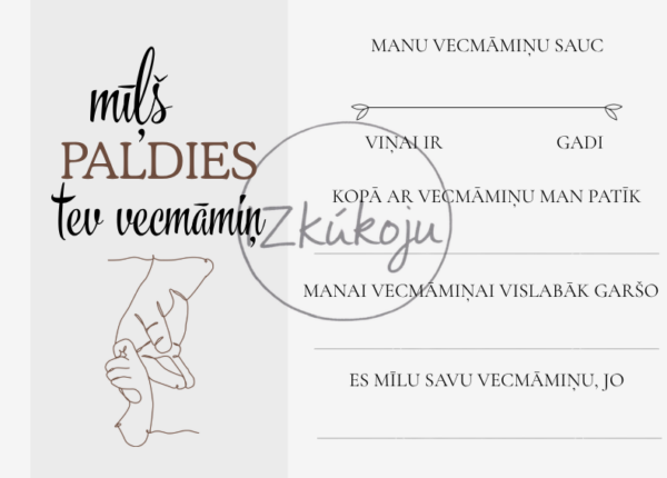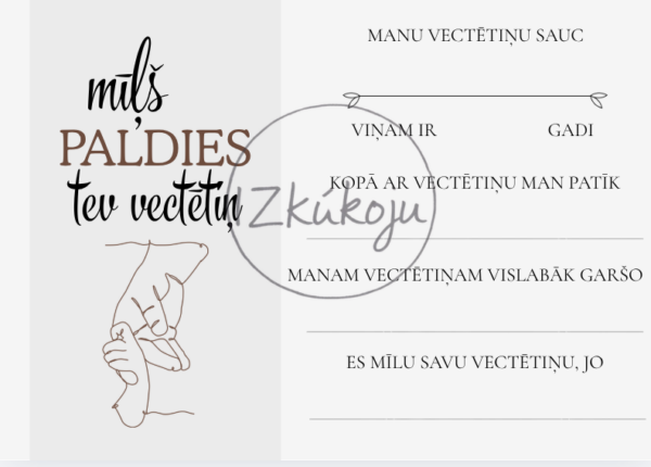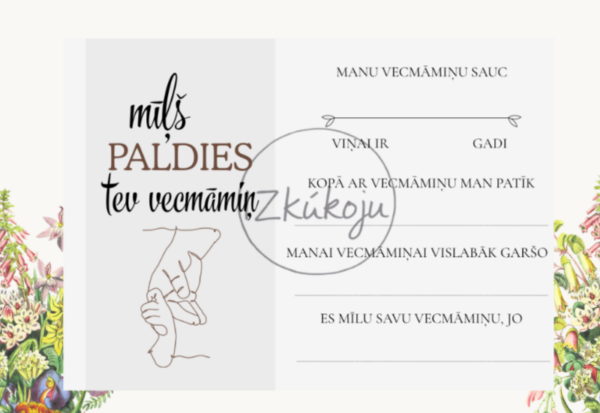 Darba lapā bērni vai pieaugušais var ierakstīt vārdu, vecumu, kopīgās nodarbes un lietas, kas garšo, kā arī pabeigt teikumus par to, kāpēc viņi mīl savu vecvecāku. Tā ir ne tikai jauka aktivitāte, bet arī vērtīga piemiņa, ko saglabāt gadiem ilgi.