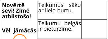Noderēs skolēniem, kuri sāk apgūt teikumu rakstīšanu. Skolēns novērtē sevi un katram kritērijam zīmē atbilstošo smaidiņu.
