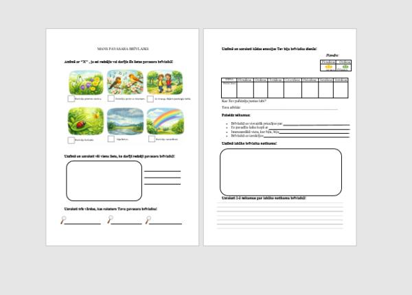 Darba lapa par pavadīto laiku pavasara brīvlaikā.