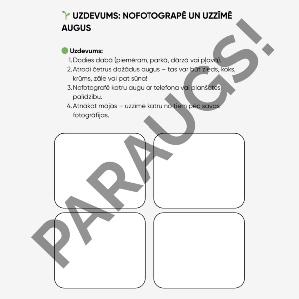 Augi dabā: Uzdevums ar fotogrāfēšanu un zīmēšanu – trenē novērošanu un zīmēšanas prasmes.