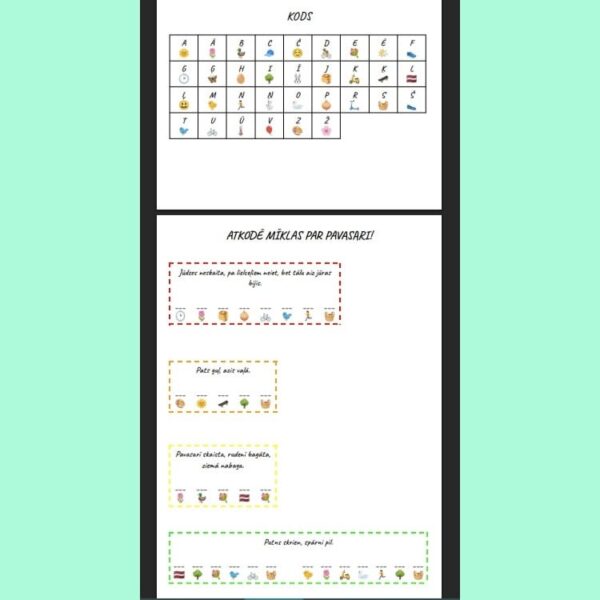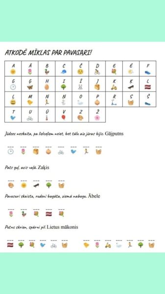 “Atkodē mīklas par pavasari!” ir vienkāršs šifrēšanas uzdevums, kurā izmantojot doto kodu ir jāatšifrē jeb jāatkodē mīklas par pavasari.