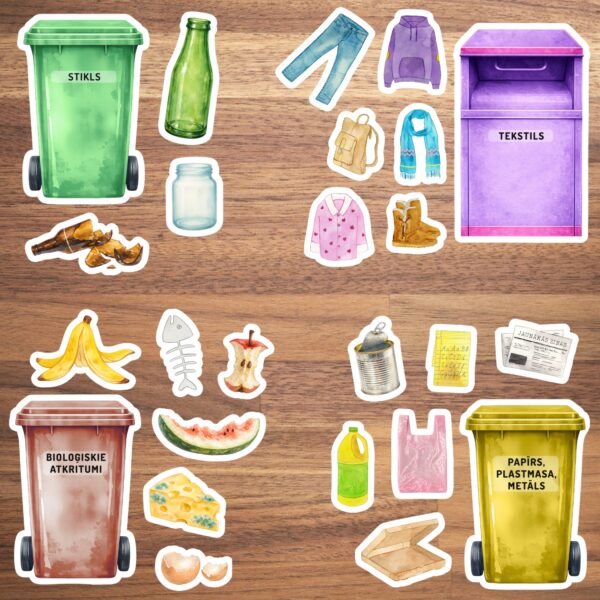 Šis mācību materiāls palīdzēs mācīt un mācīties par šķirošanu – dažādiem atkritumu veidiem un atkritumu konteineriem.