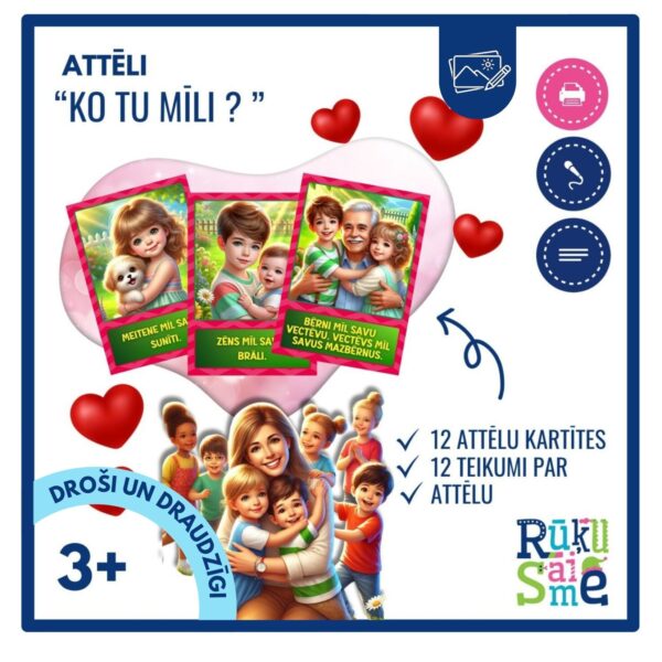 Šie krāsainie, siltie un emocionāli bagātie attēli 🖼️ atspoguļo mīlestību, draudzību un tuvību starp bērniem un pieaugušajiem. Attēli palīdz bērniem vieglāk identificēties ar redzamo un veidot priekšstatu par emocijām un attiecībām. 💖👦👧