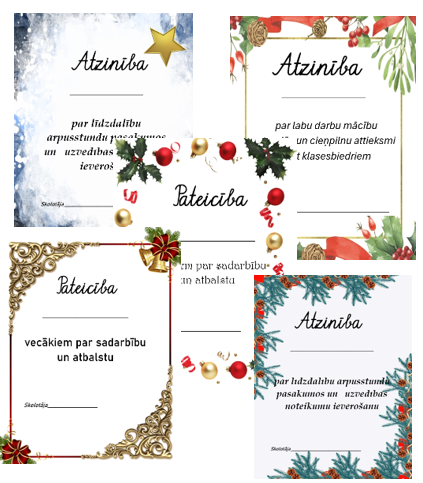 Atzinības, pateicības, diplomi – skolēniem un vecākiem.