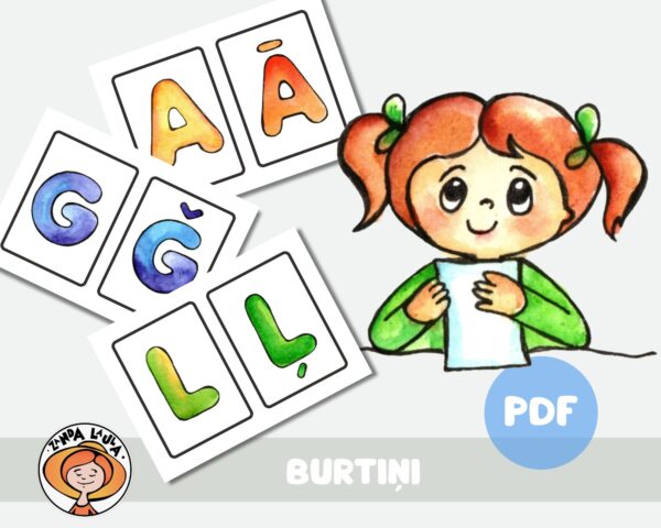 PDF fails A4 ,A5 formāts. Burtu kartītes – 9*6 cm;