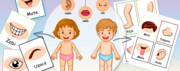 Failā bērni mācās cilvēka ķermeņa daļas nosaukumus, papildus arī 5 maņas, uzdevumi, kartītes, materiāls liels un darbošanās aktīva!
