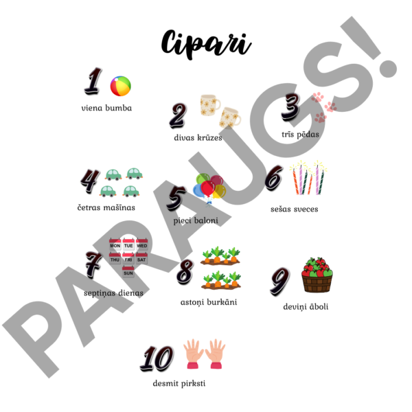 Ciparu plakāts ar teksta piemēriem.