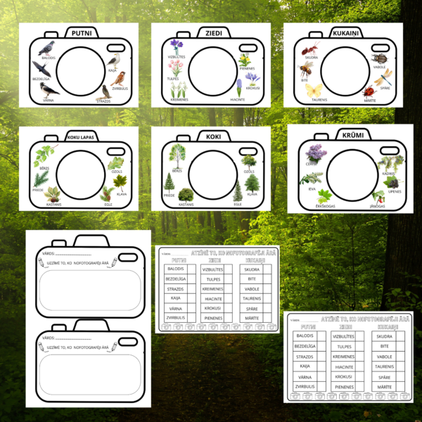 Bērni kļūst par dabas detektīviem! Pastaigas laikā viņiem līdzi ir “fotokamera”, lai meklētu ziedus, kukaiņus, kokus, koku lapas, krūmus un putnus.