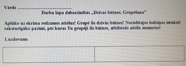 Komplektā ietilpst prezentācija „Dzīvas būtnes. Grupēšana”, darba lapa.