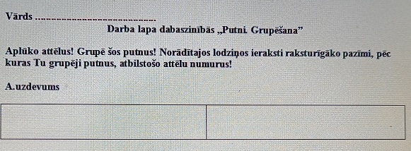 Dabaszinības 1.klasei. 1.1.Putni.Grupēšana. Pāra/grupu darbsDabaszinības 1.klasei. 1.1.Putni.Grupēšana. Pāra/grupu darbs
