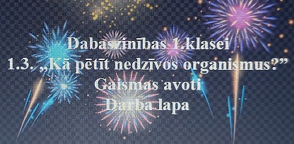 Dabaszinības 1.klasei. 1.3. Gaismas avoti. Darba lapaDabaszinības 1.klasei. 1.3. Gaismas avoti. Darba lapa
