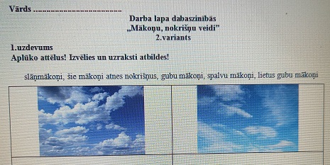 Dabaszinības 2.klasei. 2.1.Mākoņu, nokrišņu veidi.Darba lapa