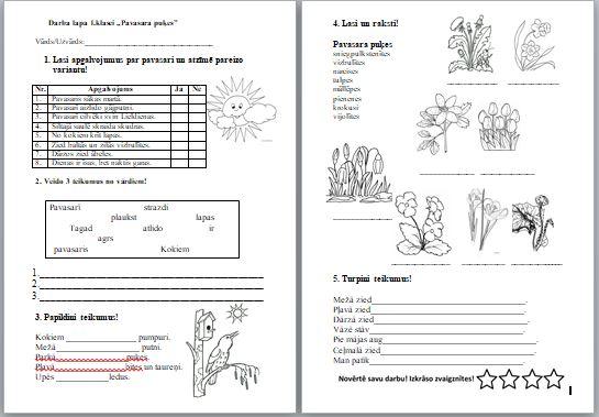 Darba lapa “Pavasara puķes” paredzēta 1. klases skolēniem.