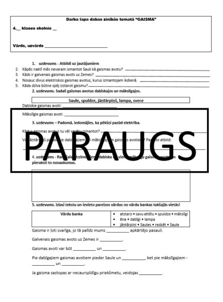 Darba lapa dabaszinībās 4. klasei “GAISMA”