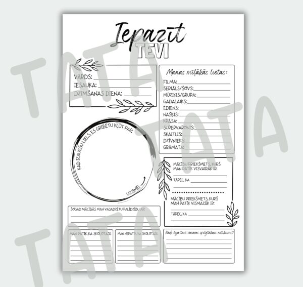 📌 Materiālā ietilpst 1 darba lapa, tā piemērota skolēnu iepazīšanai, kā arī lai noskaidrotu, kas varētu sagādāt grūtības mācībās.