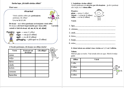 Darba lapa „Kā dalīt vārdus zilbēs”