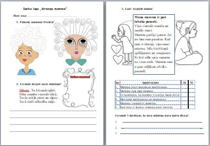 Šī darba lapa 1. klasei ir veltīta māmiņām un ietver vairākus uzdevumus.
