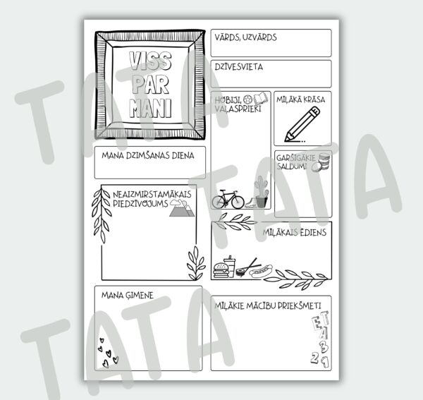 Darba lapa – Viss par mani | Zinību diena | 1.septembrisDarba lapa – Viss par mani | Zinību diena | 1.septembris