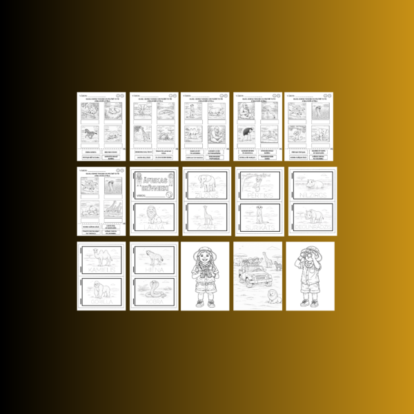 • 7 darba lapas – izveido savu grāmatiņu par Āfrikas dzīvniekiem, pārvelc nosaukumu un izkrāso;